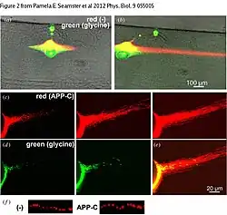 - ↑ Seamster PE, Loewenberg M, Pascal J, Chauviere A, Gonzales A, Cristini V, et al. (Oct 2012). "Quantitative measurements and modeling of cargo-motor interactions during fast transport in the living axon". Physical Biology. 9 (5): 055005. Bibcode:2012PhBio...9e5005S. doi:10.1088/1478-3975/9/5/055005. PMC 3625656. PMID 23011729.