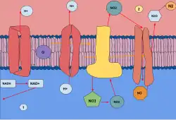 - ↑ Simon, Jörg; Klotz, Martin G. (2013-02-01). "Diversity and evolution of bioenergetic systems involved in microbial nitrogen compound transformations". Biochimica et Biophysica Acta (BBA) - Bioenergetics. 1827 (2): 114–135. doi:10.1016/j.bbabio.2012.07.005. PMID 22842521.