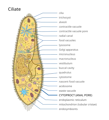 The anal pore or cytoproct is a structure in various single-celled eukaryotes where waste is ejected after the nutrients from food have been absorbed into the cytoplasm.[1]