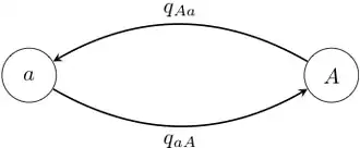 Suppose the trait in question may fall into one of states, labelled . The typical means of modelling evolution of this trait is via a continuous-time Markov chain, which may be briefly described as follows. Each state has associated to it rates of transition to all of the other states. The trait is modelled as stepping between the states; when it reaches a given state, it starts an exponential "clock" for each of the other states that it can step to. It then "races" the clocks against each other, and it takes a step towards the state whose clock is the first to ring. In such a model, the parameters are the transition rates , which can be estimated using, for example, maximum likelihood methods, where one maximizes over the set of all possible configurations of states of the ancestral nodes.
