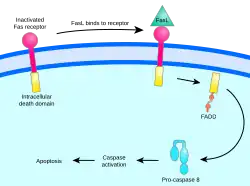 Two theories of the direct initiation of apoptotic mechanisms in mammals have been suggested: the TNF-induced (tumor necrosis factor) model and the Fas-Fas ligand-mediated model, both involving receptors of the TNF receptor (TNFR) family[39] coupled to extrinsic signals.