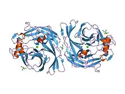 The salivary apyrases of blood-feeding arthropods are nucleotide hydrolysing enzymes that are implicated in the inhibition of host platelet aggregation through the hydrolysis of extracellular adenosine diphosphate.[1]