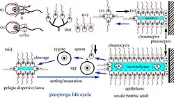 Cellular differentiation is an essential function of the archaeocyte. All specialized cells within the sponge have its origins with the archaeocyte. This is especially important in reproduction as the sex cells of the sponge in sexual reproduction are formed from these amoeboid cells. Similarly in asexual reproduction amoebocytes result in the formation of gemmules which are cyst-like spheres containing more amoebocytes as well as other sponge cells including the phylum specific choanocyte. These cells move within the walls of a sponge and form spicules.