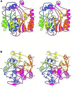 - 1 2 3 4 Humm A, Fritsche E, Steinbacher S, Huber R (June 1997). "Crystal structure and mechanism of human L-arginine:glycine amidinotransferase: a mitochondrial enzyme involved in creatine biosynthesis". EMBO J. 16 (12): 3373–85. doi:10.1093/emboj/16.12.3373. PMC 1169963. PMID 9218780.