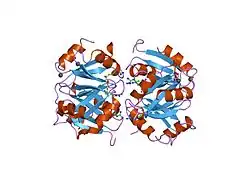 - ↑ Ni J, Sakanyan V, Charlier D, Glansdorff N, Van Duyne GD (May 1999). "Structure of the arginine repressor from Bacillus stearothermophilus". Nat. Struct. Biol. 6 (5): 427–32. doi:10.1038/8229. PMID 10331868. S2CID 24763624.