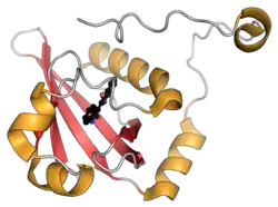 The AhR protein contains several domains critical for function and is classified as a member of the basic helix-loop-helix/Per-Arnt-Sim (bHLH/PAS) family of transcription factors.[8][9] The bHLH motif is located in the N-terminal of the protein and is a common entity in a variety of transcription factors.[10] Members of the bHLH superfamily have two functionally distinctive and highly conserved domains. The first is the basic-region (b), which is involved in the binding of the transcription factor to DNA. The second is the helix-loop-helix (HLH) region, which facilitates protein-protein interactions. Also contained with the AhR are two PAS domains, PAS-A and PAS-B, which are stretches of 200–350 amino acids that exhibit a high sequence homology to the protein domains that were originally found in the Drosophila genes period (Per) and single-minded (Sim) and in AhR's dimerization partner the aryl hydrocarbon receptor nuclear translocator (ARNT).[11] The PAS domains support specific secondary interactions with other PAS domain containing proteins, as is the case with AhR and ARNT, so that dimeric and heteromeric protein complexes can form. The ligand binding site of AhR is contained within the PAS-B domain[12] and contains several conserved residues critical for ligand binding.[13] Finally, a glutamine-rich (Q-rich) domain is located in the C-terminal region of the protein and is involved in co-activator recruitment and transactivation.[14]