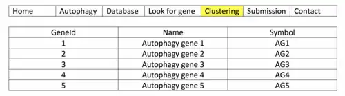 Human autophagy database has available functions for Look for gene and Clustering.[2]