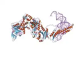 - ↑ Dou X, Limmer S, Kreutzer R (January 2001). "DNA-binding of phenylalanyl-tRNA synthetase is accompanied by loop formation of the double-stranded DNA". J. Mol. Biol. 305 (3): 451–8. doi:10.1006/jmbi.2000.4312. PMID 11152603.
