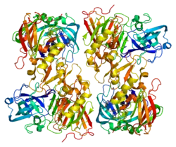 Beta-secretase 2 (EC 3.4.23.45, also known as Memapsin-1) is an enzyme[5][6][7][8] that cleaves Glu-Val-Asn-Leu-|-Asp-Ala-Glu-Phe in the Swedish variant of Alzheimer's amyloid precursor protein. BACE2 is a close homolog of BACE1.