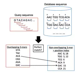 - The first method requires single perfect matches between the query and database sequences i.e. the two k-mer words are exactly the same. This approach is not considered the most practical. This is because a small k-mer size is necessary in order to achieve high levels of sensitivity, but this increases the number of false positive hits, thus increasing the amount of time spent in the alignment stage of the algorithm.[1]