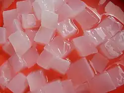 The oldest known use of bacterial cellulose is as the raw material of nata de piña, a traditional sweet candy dessert of the Philippines. Several natural colored pigments (oxycarotenoids, anthocyanins and related antioxidants and free radical scavengers) were incorporated into bacterial cellulose cubes in order to render the dessert more attractive.[43] Bacterial cellulose has also been used as a thickener to maintain the viscosity in food and as a stabilizing agent. Due to its texture and fiber content, it has been added to many food products as a dietary fiber. A specific example is Cellulon ®, which is a bulking agent used as a food ingredient to act as a thickener, texturizer, and/or calorie reducer.[44] Microbial cellulose has also been used as an additive in diet beverages in Japan since 1992, specifically kombucha, a fermented tea drink.[9]