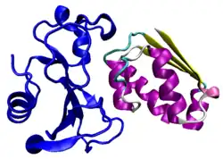- ↑ PDB: 1BRS; Buckle AM, Schreiber G, Fersht AR (August 1994). "Protein-protein recognition: crystal structural analysis of a barnase-barstar complex at 2.0-A resolution". Biochemistry. 33 (30): 8878–8889. doi:10.1021/bi00196a004. PMID 8043575.