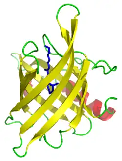 - ↑ Böcskei Z, Groom CR, Flower DR, Wright CE, Phillips SE, Cavaggioni A, et al. (November 1992). "Pheromone binding to two rodent urinary proteins revealed by X-ray crystallography". Nature. 360 (6400): 186–188. Bibcode:1992Natur.360..186B. doi:10.1038/360186a0. PMID 1279439. S2CID 4362015.