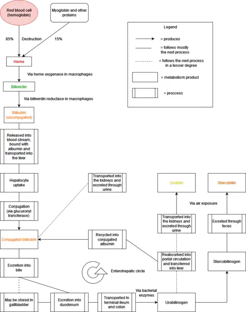 - 1 2 Kalakonda A, John S (2019). "Physiology, Bilirubin article-18281". StatPearls. Treasure Island (FL): StatPearls Publishing. PMID 29261920. Retrieved 22 December 2019.
