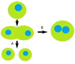 - Merging of newly formed cells: Two cells that have just finished cytokinesis merge into one another. This process is not entirely understood.[1]