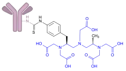 The most common types of bioconjugation include coupling of a small molecule (such as biotin or a fluorescent dye) to a protein. Antibody-drug conjugates such as Brentuximab vedotin and Gemtuzumab ozogamicin are examples falling into this category.[5] Other less common molecules used in bioconjugation are oligosaccharides, nucleic acids, synthetic polymers such as polyethylene glycol,[6] and carbon nanotubes.[7] Protein-protein conjugations, such as the coupling of an antibody to an enzyme, or the linkage of protein complexes, is also facilitated via bioconjugations.[8][9]
