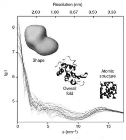 - ↑ Svergun DI, Petoukhov MV, Koch MH (June 2001). "Determination of domain structure of proteins from X-ray solution scattering". Biophysical Journal. 80 (6): 2946–53. Bibcode:2001BpJ....80.2946S. doi:10.1016/S0006-3495(01)76260-1. PMC 1301478. PMID 11371467.