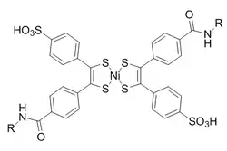 Bis(dithiobenzil)nickel(II) was chosen as a reaction partner out of a candidate screen based on reactivity. To prevent light-induced reversion to norbornadiene, diethyldithiocarbamate is added to chelate the nickel in the product.