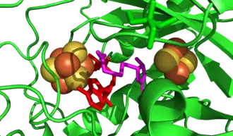 - ↑ Berkovitch F, Nicolet Y, Wan JT, Jarrett JT, Drennan CL (January 2004). "Crystal structure of biotin synthase, an S-adenosylmethionine-dependent radical enzyme". Science. 303 (5654): 76–9. Bibcode:2004Sci...303...76B. doi:10.1126/science.1088493. PMC 1456065. PMID 14704425.