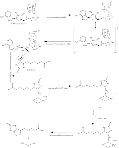 - ↑ Lotierzo M, Tse Sum Bui B, Florentin D, Escalettes F, Marquet A (August 2005). "Biotin synthase mechanism: an overview". Biochemical Society Transactions. 33 (Pt 4): 820–3. doi:10.1042/BST0330820. PMID 16042606.