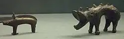 When bred intentionally, the hybrid is intended to visually recreate—to "back-breed"— the look of pigs represented in prehistoric artworks of the Iron Age and earlier in ancient Europe. A project to create them, under the name Iron Age pig, started in the early 1980s by crossing a male wild boar with a Tamworth sow to produce an animal that looks like the pig from long ago.[1] Iron Age pigs are generally only raised in Europe for the specialty meat market, and in keeping with their heritage are generally more aggressive and harder to handle than purebred domesticated pigs.[1]