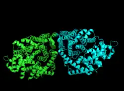 ![]() Cartoon representation of crystal structure 1N1B colored by monomer. | |||||||||