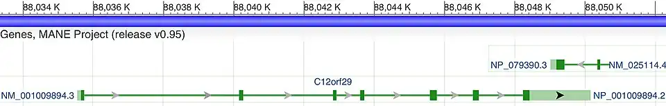 - 1 2 3 4 "C12orf29 chromosome 12 open reading frame 29 [Homo sapiens (human)] - Gene - NCBI". www.ncbi.nlm.nih.gov. Retrieved 2021-09-26.