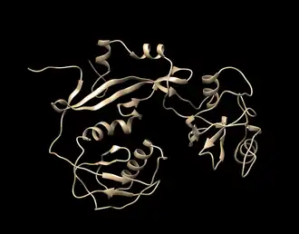 A variety of missense mutations occur in the human population for this protein. In the regulatory sequence missense mutations occur at two transcription factor binding sites.[32] Transcription factors affected are glucocorticoid responsive elements and E2F-myc cell cycle regulars. There are eleven common mutations that occur that affect the protein sequence itself.[32] None of these mutations affect predicted post-translational modifications the protein sequence undergoes.