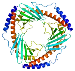 - ↑ Jiang, Jianzhong (1999). "rystal structure of human p32, a doughnut-shaped acidic mitochondrial matrix protein". PNAS. 96 (7): 3572–3577. Bibcode:1999PNAS...96.3572J. doi:10.1073/pnas.96.7.3572. PMC 22335. PMID 10097078.