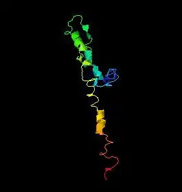 C1orf21 protein is 121 amino acids long with a molecular weight of 18,7 kDa with an isoelectric point of 5.08. It is believed that the protein interacts with the nuclear membrane and contains an unknown domain known as DUF4612. For the secondary and tertiary structure it is predicted that there are many alpha helices in the structure, with the rest of the protein having a disordered structure.[12]