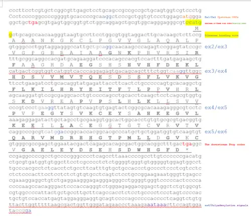 Transcript variant 4 has a size of 1457 bases with 6 exons.[13] Compared to variant 1, it uses an alternative 5’-most exon and an alternative splice site.[8] Because of the presence of an upstream ORF that is predicted to interfere with translation of this variant, the transcription variant 4 does not encode any protein.
