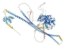 Caspase recruitment domain-containing protein 11 also known as CARD-containing MAGUK protein 1 (Carma 1) is a protein in the CARD-CC protein family that in humans is encoded by the CARD11 gene.[5][6][7] CARD 11 is a membrane associated protein that is found in various human tissues, including the thymus, spleen, liver, and peripheral blood leukocytes. Similarly, CARD 11 is also found in abundance in various lines of cancer cells.[5]