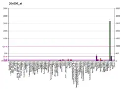 - ↑ Hromas R, Kim CH, Klemsz M, Krathwohl M, Fife K, Cooper S, et al. (September 1997). "Isolation and characterization of Exodus-2, a novel C-C chemokine with a unique 37-amino acid carboxyl-terminal extension". Journal of Immunology. 159 (6): 2554–2558. doi:10.4049/jimmunol.159.6.2554. PMID 9300671. S2CID 33971251.