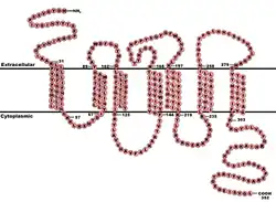 The CCR5 protein belongs to the beta chemokine receptors family of integral membrane proteins.[12][13] It is a G protein–coupled receptor[12] which functions as a chemokine receptor in the CC chemokine group.