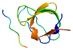 - ↑ Kirsch KH, Georgescu MM, Shishido T, Langdon WY, Birge RB, Hanafusa H (Feb 2001). "The adapter type protein CMS/CD2AP binds to the proto-oncogenic protein c-Cbl through a tyrosine phosphorylation-regulated Src homology 3 domain interaction". J. Biol. Chem. 276 (7): 4957–63. doi:10.1074/jbc.M005784200. PMID 11067845.
