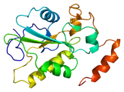 CDC25B is a member of the CDC25 family of phosphatases. CDC25B activates the cyclin dependent kinase CDC2 by removing two phosphate groups and it is required for entry into mitosis. CDC25B shuttles between the nucleus and the cytoplasm due to nuclear localization and nuclear export signals. The protein is nuclear in the M and G1 phases of the cell cycle and moves to the cytoplasm during S and G2. CDC25B has oncogenic properties, although its role in tumor formation has not been determined. Multiple transcript variants for this gene exist.[6]