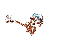 Hsp90 co-chaperone Cdc37 is a protein that in humans is encoded by the CDC37 gene.[5] This protein is highly similar to Cdc 37, a cell division cycle control protein of Saccharomyces cerevisiae. This protein is a HSP90 Co-chaperone[6] with specific function in cell signal transduction. It has been shown to form complex with Hsp90 and a variety of protein kinases including CDK4, CDK6, SRC, RAF1, MOK, as well as eIF-2 alpha kinases. It is thought to play a critical role in directing Hsp90 to its target kinases.[7]