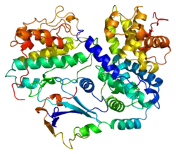 Cyclin-dependent kinase inhibitor 1B (p27Kip1) is an enzyme inhibitor that in humans is encoded by the CDKN1B gene.[5] It encodes a protein which belongs to the Cip/Kip family of cyclin dependent kinase (Cdk) inhibitor proteins. The encoded protein binds to and prevents the activation of cyclin E-CDK2 or cyclin D-CDK4 complexes, and thus controls the cell cycle progression at G1. It is often referred to as a cell cycle inhibitor protein because its major function is to stop or slow down the cell division cycle.