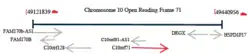 The cytogenic locus is found at 10q11.23.[1] C10orf71 encodes 28294 base pairs (bp) within chromosome 10 at 49299193-49327487 bp.[1] It is located on the plus strand and is flanked by several other genes.[1]