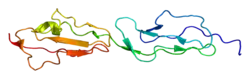 - ↑ Estaller C, Koistinen V, Schwaeble W, Dierich MP, Weiss EH (May 1991). "Cloning of the 1.4-kb mRNA species of human complement factor H reveals a novel member of the short consensus repeat family related to the carboxy terminal of the classical 150-kDa molecule" (PDF). J Immunol. 146 (9): 3190–6. doi:10.4049/jimmunol.146.9.3190. PMID 1826708.