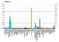 - ↑ Maouche-Chretien L, Deleu N, Badoual C, Fraissignes P, Berger R, Gaulard P, Romeo PH, Leroy-Viard K (Oct 1998). "Identification of a novel cDNA, encoding a cytoskeletal associated protein, differentially expressed in diffuse large B cell lymphomas". Oncogene. 17 (10): 1245–51. doi:10.1038/sj.onc.1202048. PMID 9771967. S2CID 24883661.