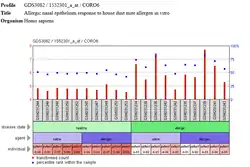 There are several clinical studies about that have been performed by using microarray indicating that CORO6 is positively related to allergic nasal epithelium response to house dust mite allergen in vitro.[12]