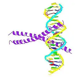 - ↑ Zor T, Mayr BM, Dyson HJ, Montminy MR, Wright PE (Nov 2002). "Roles of phosphorylation and helix propensity in the binding of the KIX domain of CREB-binding protein by constitutive (c-Myb) and inducible (CREB) activators". The Journal of Biological Chemistry. 277 (44): 42241–8. doi:10.1074/jbc.M207361200. PMID 12196545.