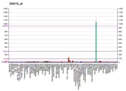 - Clark HF, Gurney AL, Abaya E, et al. (2003). "The secreted protein discovery initiative (SPDI), a large-scale effort to identify novel human secreted and transmembrane proteins: a bioinformatics assessment". Genome Res. 13 (10): 2265–70. doi:10.1101/gr.1293003. PMC 403697. PMID 12975309.