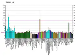 Prostaglandin D2 receptor 2 (DP2 or CRTH2) is a human protein encoded by the PTGDR2 gene.[5] DP2 has also been designated as CD294 (cluster of differentiation 294). It is a member of the class of prostaglandin receptors which bind with and respond to various prostaglandins. DP2 along with prostaglandin DP1 receptor are receptors for prostglandin D2 (PGD2). Activation of DP2 by PGD2 or other cognate receptor ligands has been associated with certain physiological and pathological responses, particularly those associated with allergy and inflammation, in animal models and certain human diseases.