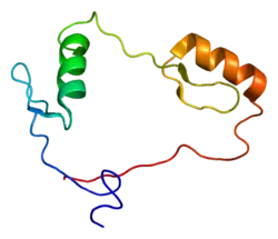 Transcriptional repressor CTCF also known as 11-zinc finger protein or CCCTC-binding factor is a transcription factor that in humans is encoded by the CTCF gene.[5][6] CTCF is involved in many cellular processes, including transcriptional regulation, insulator activity, V(D)J recombination[7] and regulation of chromatin architecture.[8]