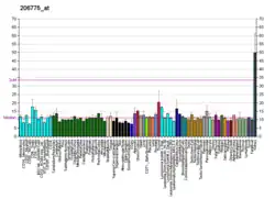 - ↑ Uhlén M, Fagerberg L, Hallström BM, Lindskog C, Oksvold P, Mardinoglu A, Sivertsson Å, Kampf C, Sjöstedt E (2015-01-23). "Tissue-based map of the human proteome". Science. 347 (6220): 1260419. doi:10.1126/science.1260419. ISSN 0036-8075. PMID 25613900. S2CID 802377.