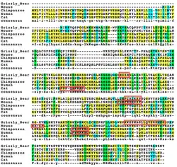 Using PSORT II, there is a nuclear localization signal of PYKKKHL at 268aa.[26] This signal can be seen to be conserved in fellow primate species; however, is not present in other mammals. In addition to this, following SDSC's Biology Workbench's SAPS kNN-Prediction, the CXorf66 protein for humans and the mouse homolog have a 47.8% likelihood to end up in the nuclear region of a cell. For more distant homologs, like Bos taurus, that do not have nuclear localization signals however, CXorf66 has a 34.8% likelihood to end up in the extracellular, including cell wall region, or plasma membrane regions.[12][26] To view several homologs and their nuclear localization signals, see Figure V.
