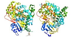 Cytochrome P450 family 24 subfamily A member 1 (abbreviated CYP24A1) is a member of the cytochrome P450 superfamily of enzymes encoded by the CYP24A1 gene. It is a mitochondrial monooxygenase which catalyzes reactions including 24-hydroxylation of calcitriol (1,25-dihydroxyvitamin D3).[5] It has also been identified as vitamin D3 24-hydroxylase.(EC 1.14.15.16)