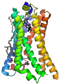 - ↑ Hua T, Vemuri K, Pu M, Qu L, Han GW, Wu Y, et al. (October 2016). "Crystal Structure of the Human Cannabinoid Receptor CB1". Cell. 167 (3): 750–762.e14. doi:10.1016/j.cell.2016.10.004. PMC 5322940. PMID 27768894.